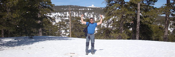 vrha pripeljali in na sam vrh ne moreš, saj so le-tam vojaški radarji, ki verjetno opazujejo dogajanje v bližnji Siriji. Sprehodili smo se skozi borov gozd in po grebenu, nato pa na pir. Snega je še vedno na pretek, preko metra ga je na prisojni strani.  Obisk najvišjega vrha Cipra mi je omogočil SCALES Project.